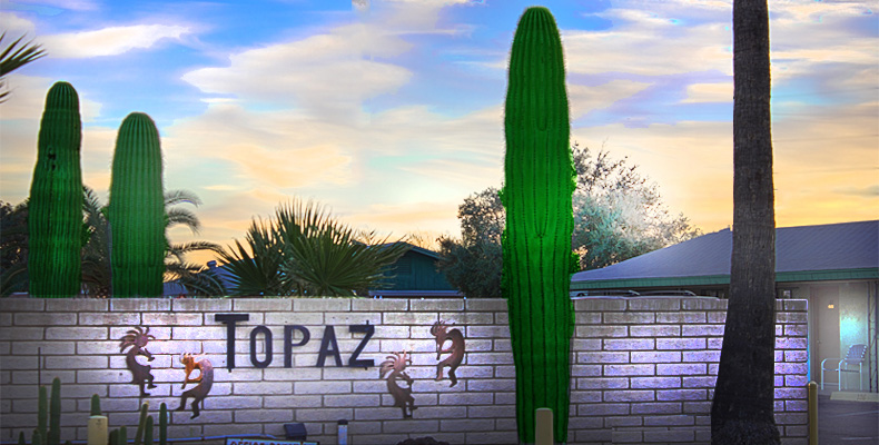 Located conviently near the US 60 and the AZ Loop 202, the gateways to Mesa, Gilbert, Tempe and Phoenix, the Topaz Inn and Suites is nestled in the shadow of one of the most enchanting mountain ranges in the Arizona desert.