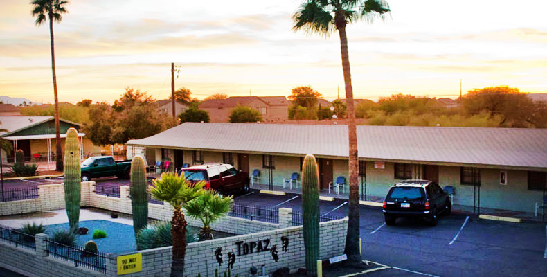 Travelling east from Phoenix Sky Harbor, take the exit for Loop 202 East. Take the exit for University/Apache Trail, continue onto Apache Trail, and make a left. Continue on Apache Trail for 2 miles and we are on the south side of the street.